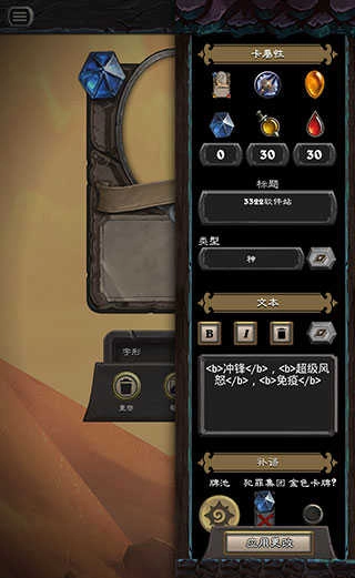 編輯菜單內(nèi)可以編輯卡牌的各項參數(shù),如職業(yè)、稀有度、身材、效果等。