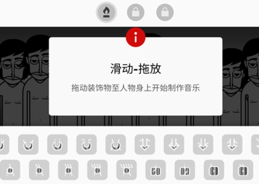 玩家可拖動裝飾物(如樂器、音效圖標)至角色身上,觸發(fā)不同音軌,生成獨特的音樂組合。