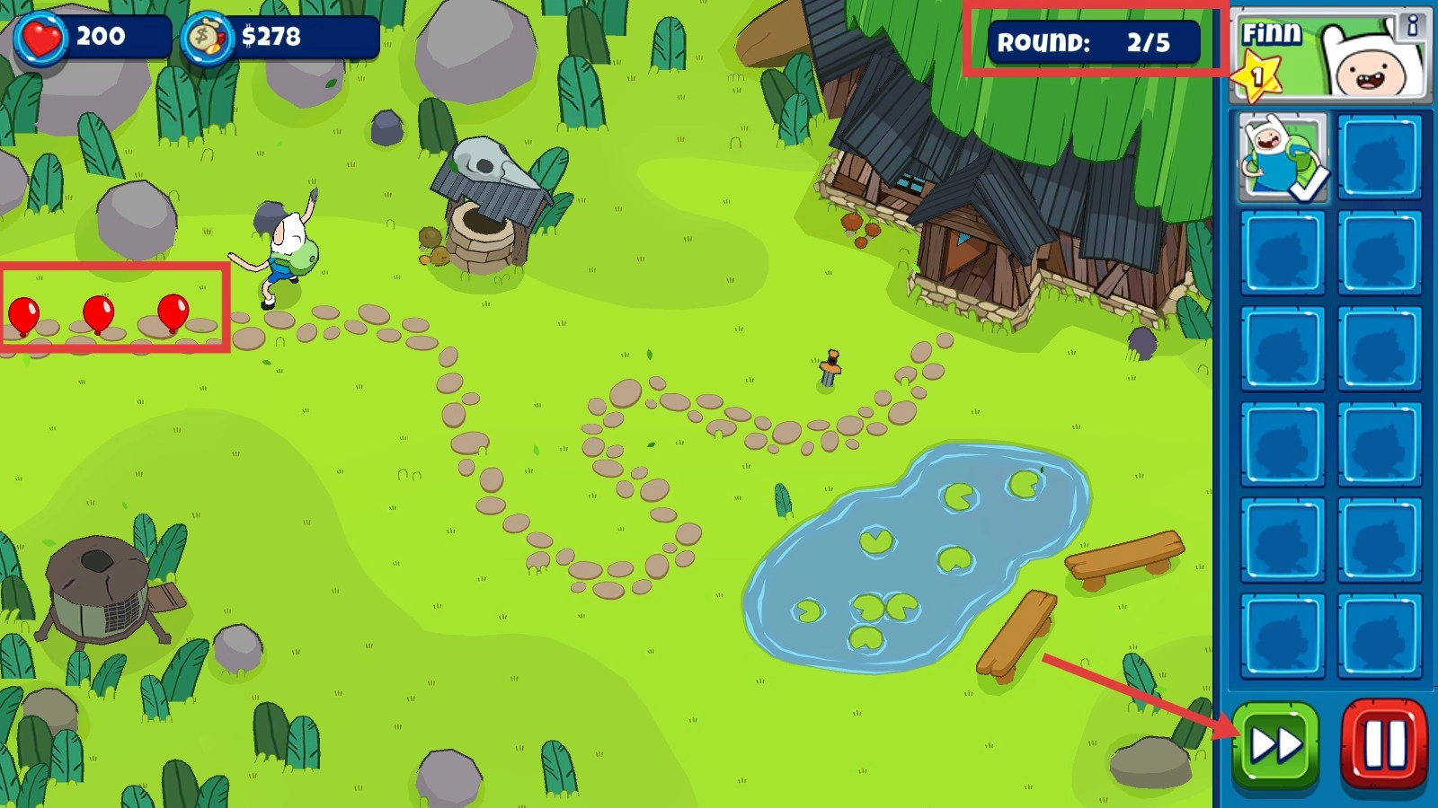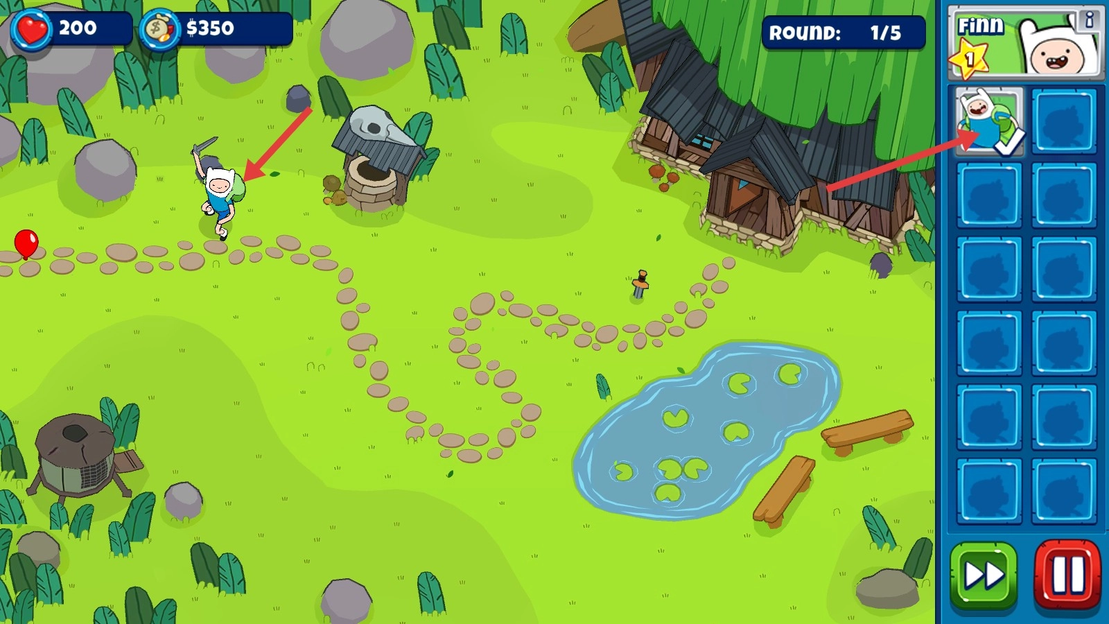 2、選擇角色【Finn】,在地圖上布置防御。