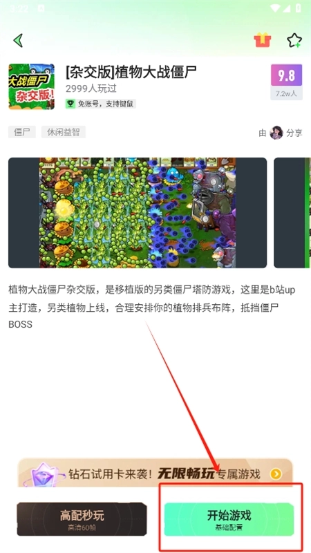 4、找到想玩的游戲資源,點(diǎn)擊進(jìn)入詳情頁面,點(diǎn)擊開始游戲即可開始暢玩