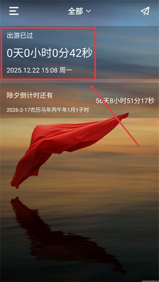 4、保存完畢后回到主界面,剛創(chuàng)建好的事件會(huì)出現(xiàn)在列表里,系統(tǒng)會(huì)自動(dòng)啟動(dòng)計(jì)時(shí)功能,同時(shí)展示出時(shí)間進(jìn)度情況。