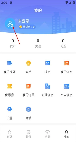2、進入我的頁面,可看到未登錄狀態(tài)及我的錢袋等功能,點擊登錄入口進入賬號密碼登錄頁面。