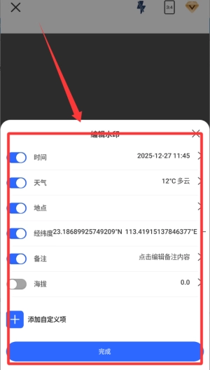 為保證信息的精準性,可借助應用自帶的自動定位和時間更新功能,這樣就能讓每條記錄的水印信息都準確無誤,不需要進行手動調整。