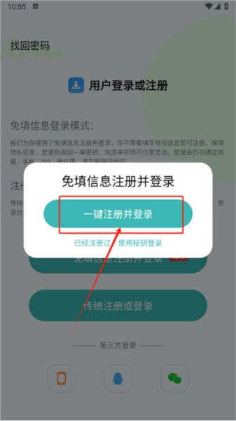 然后點擊一鍵注冊并登錄