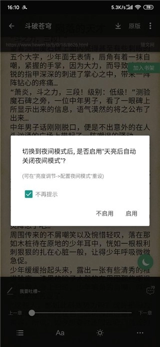 我們看到提示出現(xiàn)后點擊“啟用”,就能切換到夜間模式,用戶可以在此處進(jìn)行相關(guān)設(shè)置與使用。