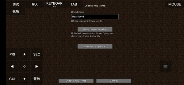 挑選游戲模式并確定名稱,然后點(diǎn)擊“Create New World”按鈕。