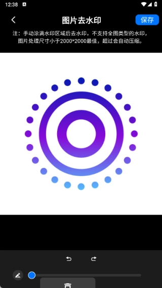 3、進入圖片去水印頁面后,先上傳相冊里的圖片,接著選擇合適的筆刷大小,再框選需要去除水印的區(qū)域,就能快速完成去水印操作。