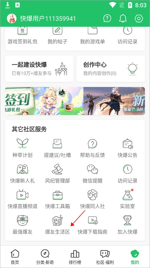還可以進入【我的】頁面中點擊【爆友生活區(qū)】
