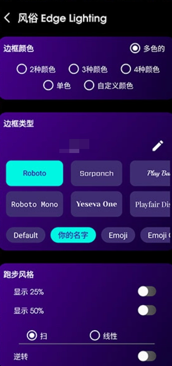 2、在打開(kāi)的新界面中即可對(duì)邊框顏色、邊框類(lèi)型以及跑馬燈風(fēng)格以及速度等參數(shù)進(jìn)行設(shè)置