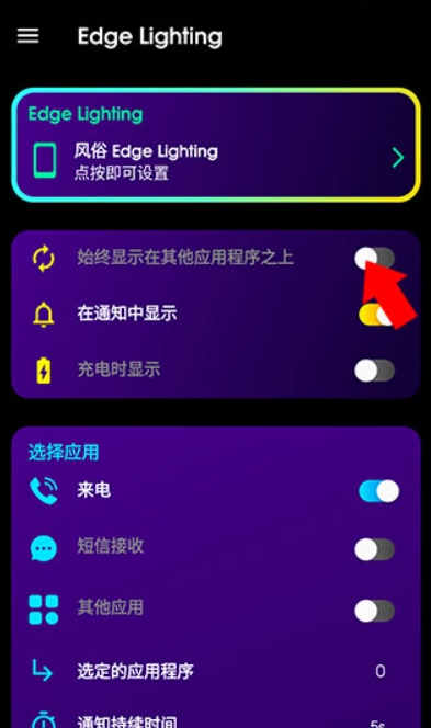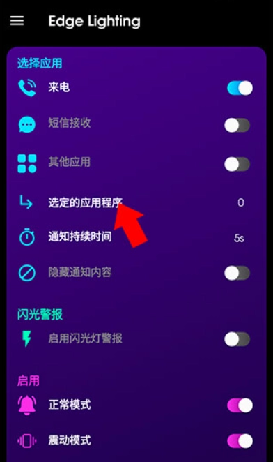 4、點(diǎn)擊選定的應(yīng)用程序,并在彈出的窗口中選中想要設(shè)定的應(yīng)用,即可在收到指定通知時(shí)亮邊框