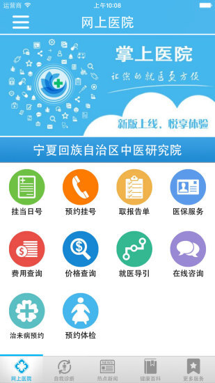 3、具備手機(jī)掛號、專家預(yù)約、就醫(yī)查詢、報(bào)告單在線查詢、門診咨詢、住院費(fèi)用清單領(lǐng)取、醫(yī)保賬戶余額查詢等功能。