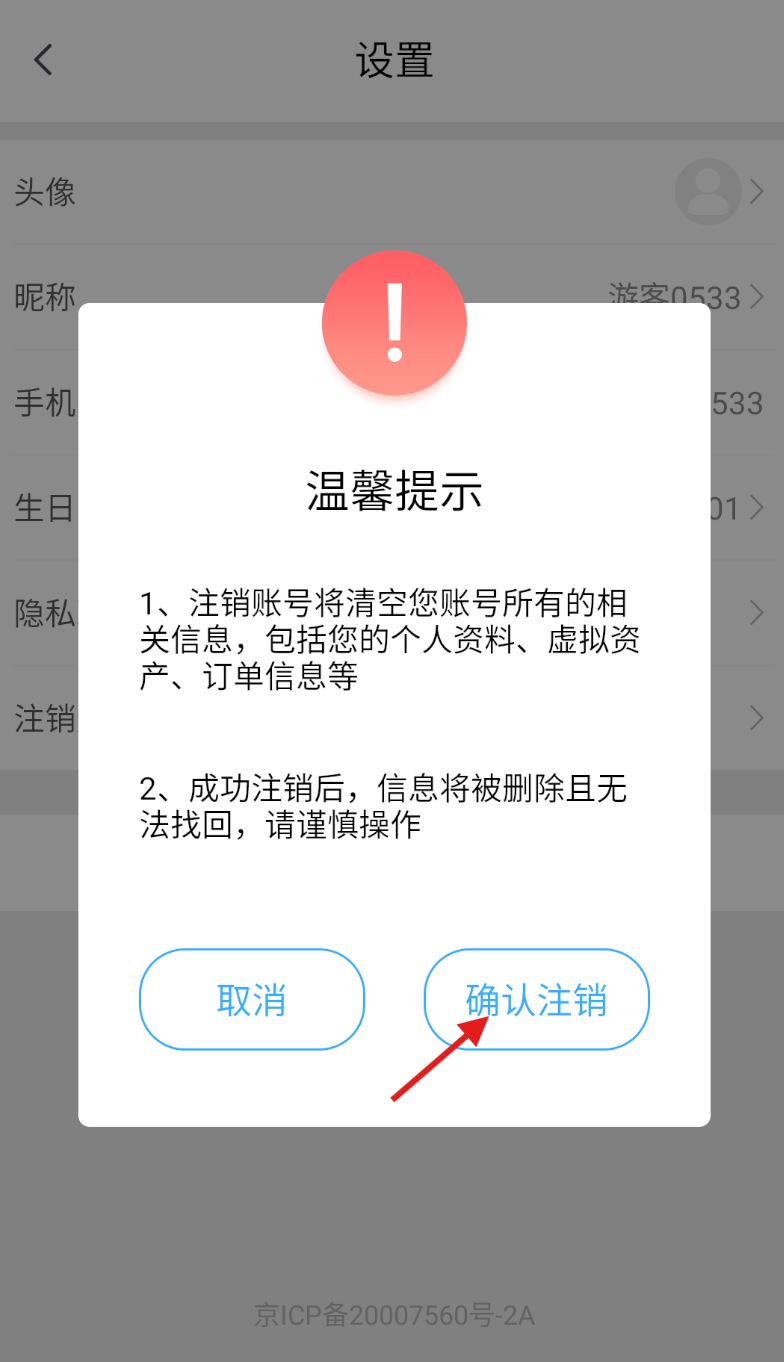 4、最后請仔細(xì)閱讀溫馨提示,閱讀完畢后點擊確認(rèn)注銷按鈕,即可完成整個流程。