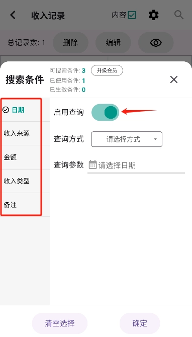 5. 通過(guò)啟用搜索條件快速找到并預(yù)覽筆記的信息。
