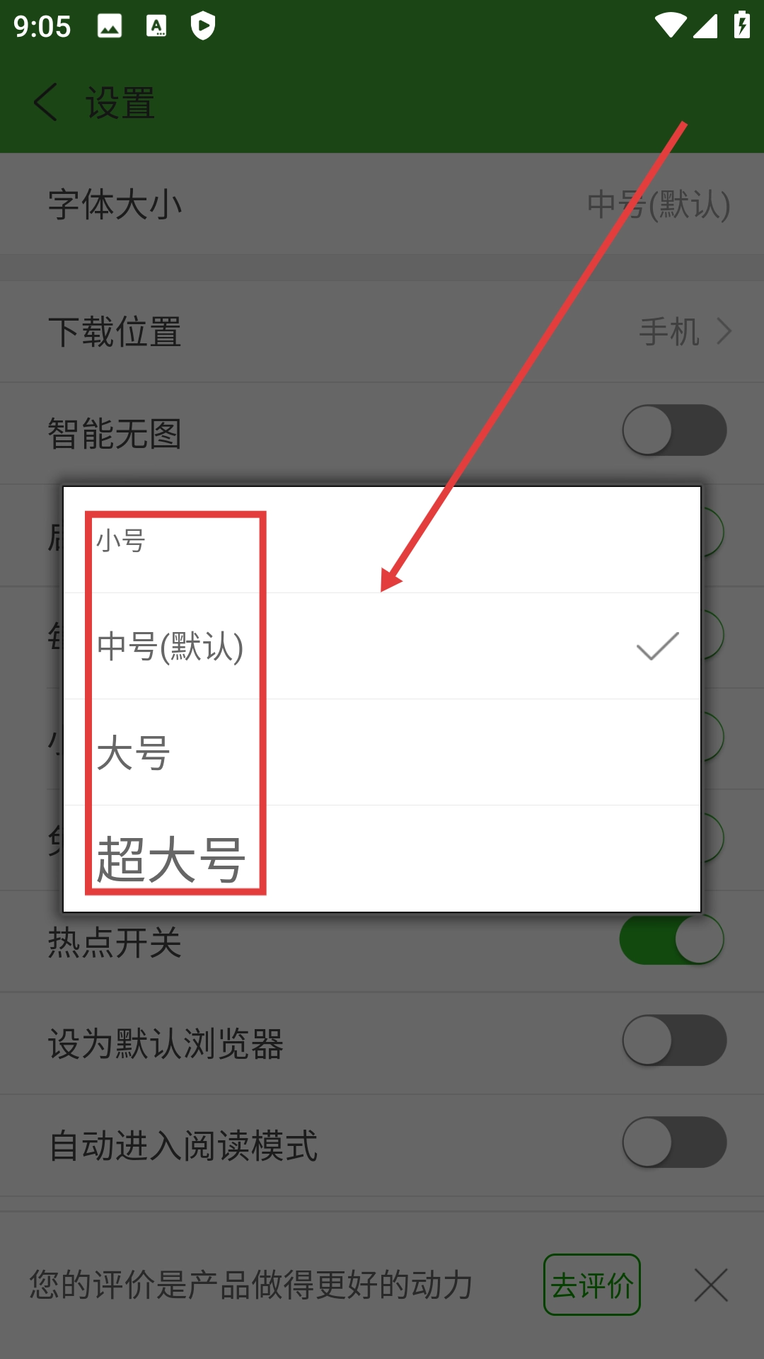 在字體大小選擇界面選定目標(biāo)字號(hào),即可完成字體大小的設(shè)置。