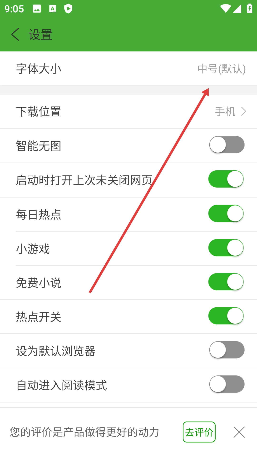 進(jìn)入設(shè)置頁(yè)面后,點(diǎn)擊【字體大小】選項(xiàng),即可進(jìn)入字體大小的選擇界面。