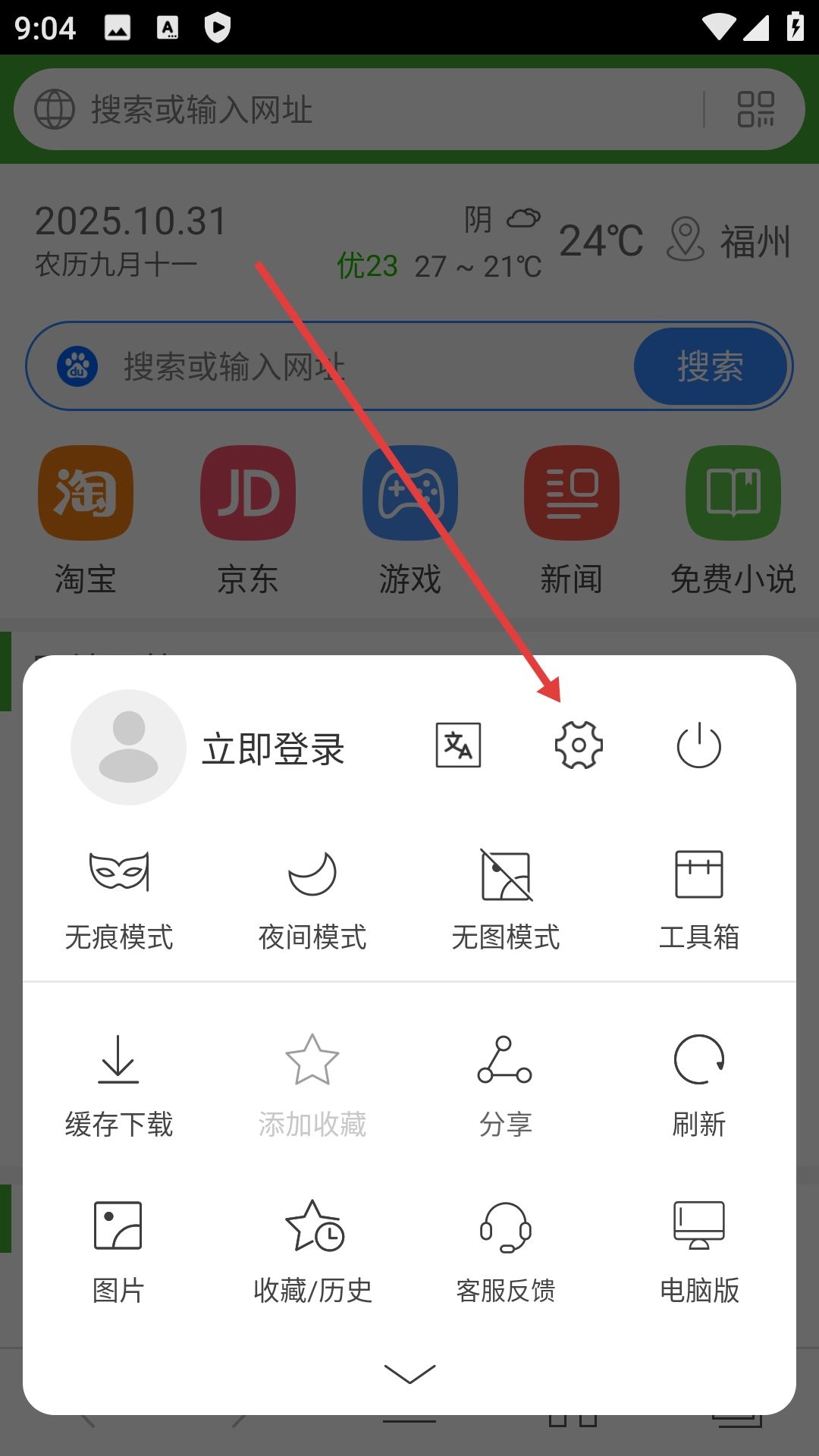 在瀏覽器界面點(diǎn)擊底部菜單按鈕,展開(kāi)功能菜單。