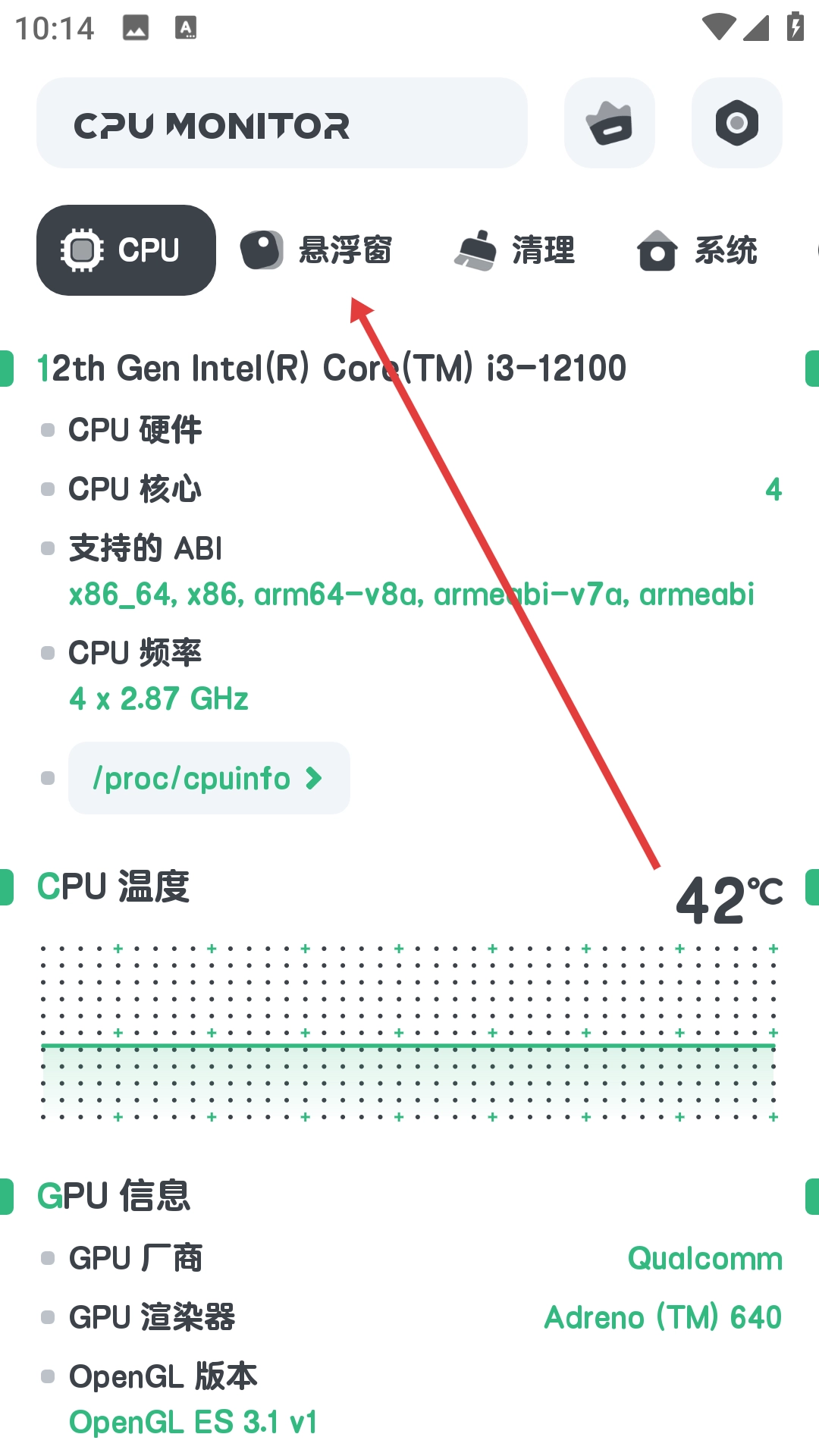 開(kāi)啟后,懸浮窗將顯示CPU溫度曲線(xiàn),完成設(shè)置。