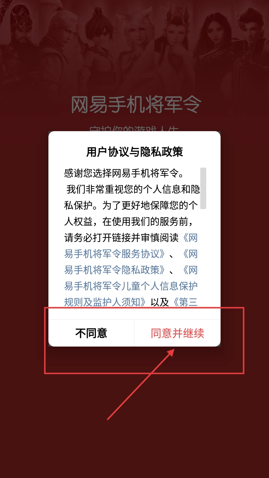 在用戶協(xié)議和隱私政策頁面,點擊【同意并繼續(xù)】按鈕,以確認相關(guān)協(xié)議內(nèi)容。