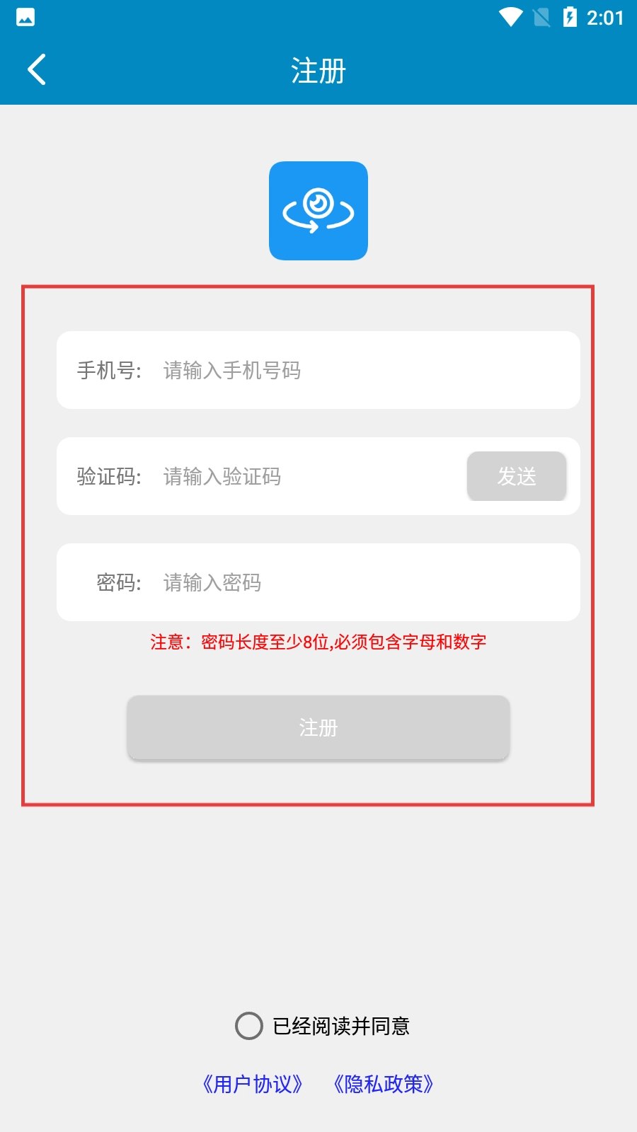 在注冊頁面,填寫手機(jī)號(hào)碼、驗(yàn)證碼,設(shè)置滿足要求的密碼,勾選同意相關(guān)協(xié)議后點(diǎn)擊【注冊】按鈕,就能完成整個(gè)注冊流程。