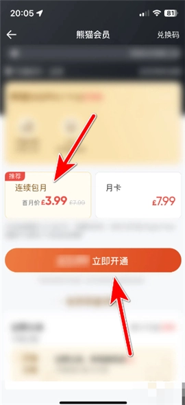 選擇目標(biāo)會(huì)員套餐后,點(diǎn)擊【立即開通】選項(xiàng)。