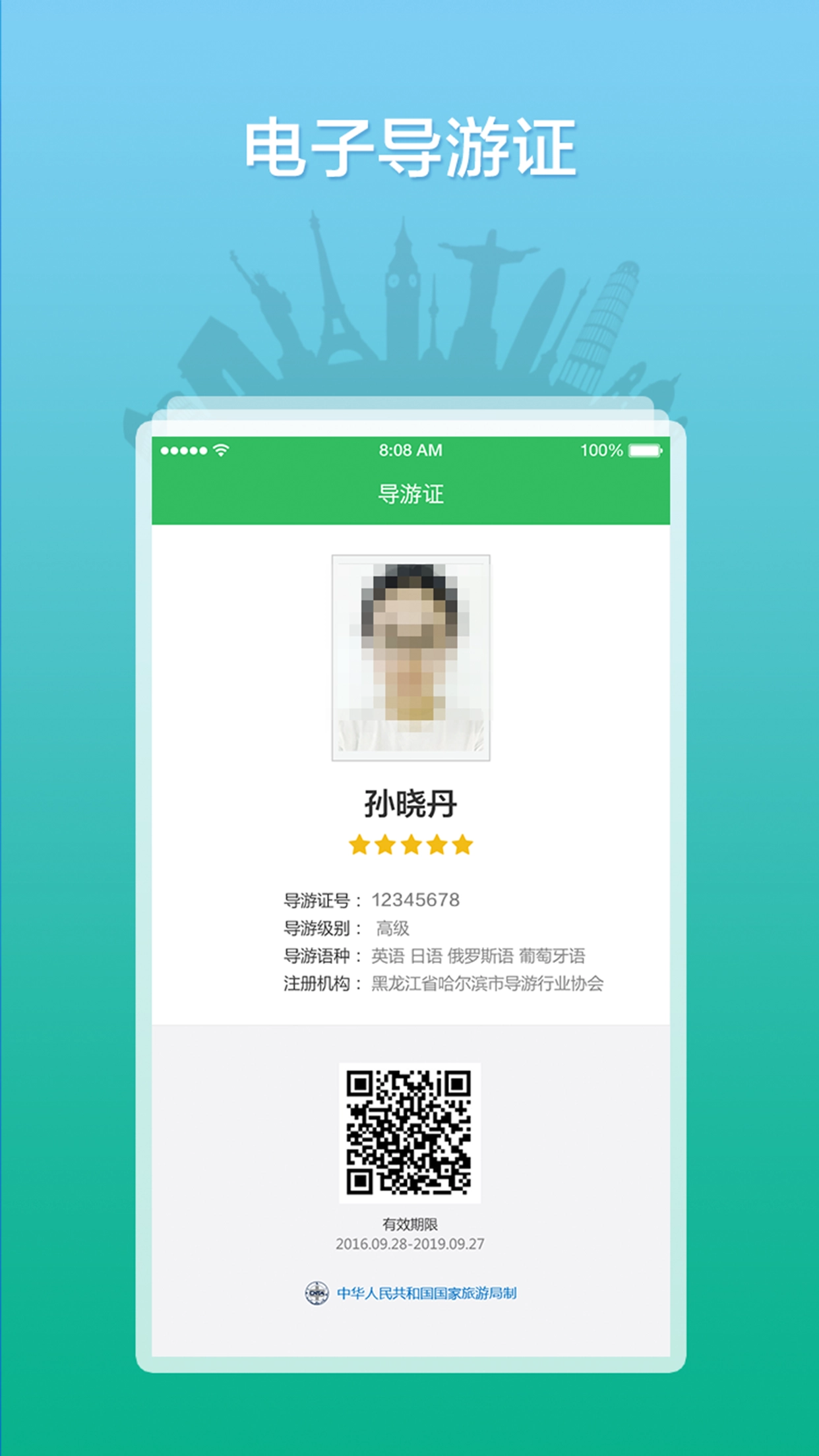 支持電子導(dǎo)游證掃碼展示功能,游客只需掃碼就能迅速了解導(dǎo)游的相關(guān)信息,從而提高導(dǎo)游執(zhí)業(yè)的便捷程度。
