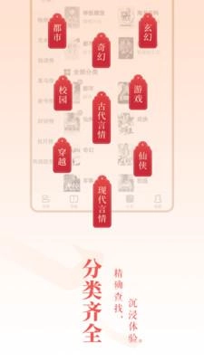 3、軟件會把所有小說按題材、作者進行分類,方便用戶發(fā)現(xiàn)更多新書和內(nèi)容,不用再為書荒而煩惱。