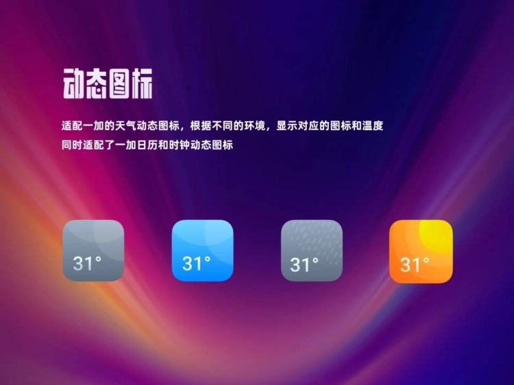 它還匹配了一加的動態(tài)天氣、時鐘與日歷圖標(biāo)。當(dāng)下雨時,天氣圖標(biāo)會呈現(xiàn)雨滴動畫;到了整點報時,時鐘指針會順滑轉(zhuǎn)動;日期變動時,日歷圖標(biāo)會自動翻頁。這些小細節(jié)讓桌面一下子“活”了過來,每次查看時間都忍不住多瞧兩眼。