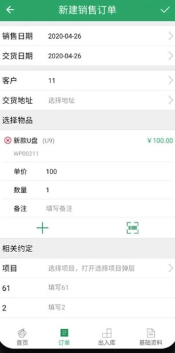 4、在訂單板塊,用戶也可以輸入新建銷售訂單。
