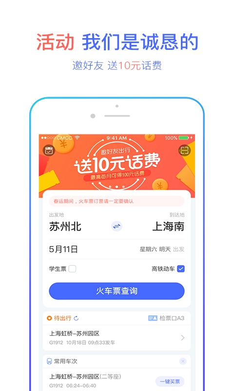 預(yù)訂高鐵、動(dòng)車、火車票;