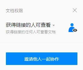 1)點(diǎn)擊“權(quán)限”按鈕,可設(shè)置文檔的權(quán)限(私密、可查看、可編輯),還可指定文檔的協(xié)作者及其權(quán)限。另外底部高級(jí)設(shè)置可設(shè)置文檔的有效期(永久、7天、1天)以及文檔水印等。(詳細(xì)用法見第五章)