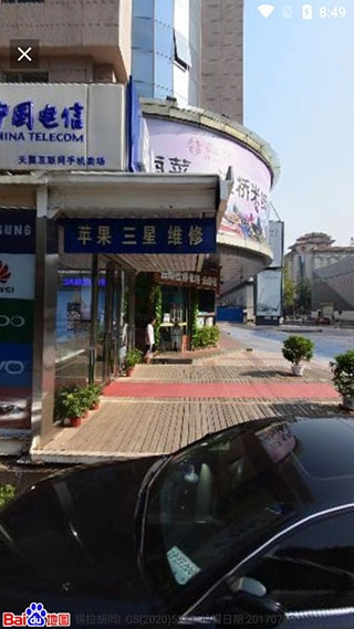 3、點(diǎn)擊后立即進(jìn)入全景街景模式,仿佛身臨其境,探索城市細(xì)節(jié)。