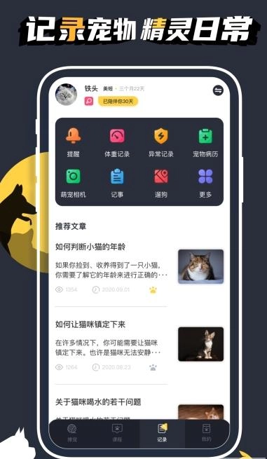 2、人與萌寵,交流神器,與小伙伴,一起撩寵,記錄寵物,精靈日常。