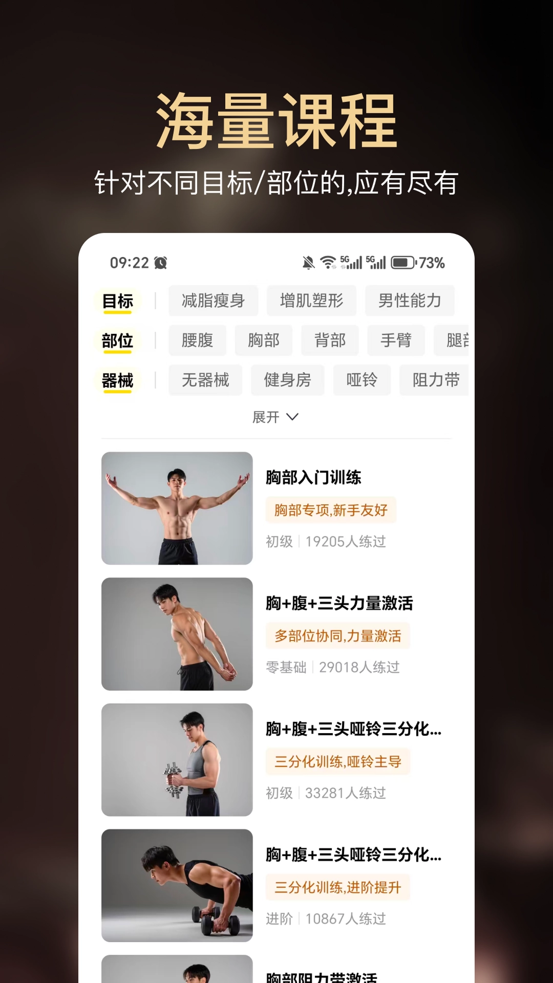 小白健身手機(jī)版是一款專(zhuān)業(yè)的健身教學(xué)軟件,用戶(hù)能在這里找到由專(zhuān)業(yè)健身教練針對(duì)不同器械、肌肉部位和用戶(hù)群體設(shè)計(jì)的健身課程,這些課程分類(lèi)清晰,方便用戶(hù)根據(jù)自身需求挑選學(xué)習(xí)。軟件內(nèi)容覆蓋全面,適用場(chǎng)景包括健身房、家庭、戶(hù)外等,讓用戶(hù)鍛煉不受時(shí)間和空間的約束,感興趣的朋友不妨來(lái)體驗(yàn)一下。