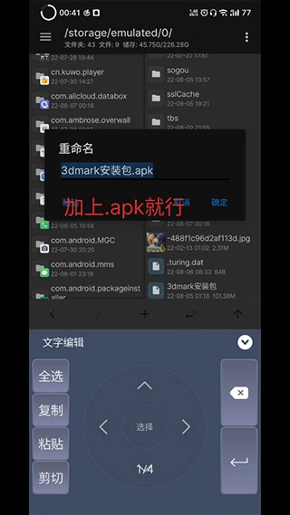 2、將數(shù)據(jù)包解壓到/storage/emulated/0/Android/data/路徑下,隨后把數(shù)據(jù)包重命名為com.futuremark.dmandroid.lication,此次僅下載了測(cè)試常用的WildLife。