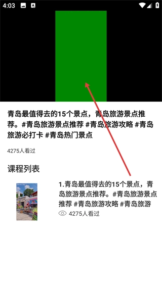 3、在景點推薦詳情頁,點擊相應的內(nèi)容條目,即可進入景點介紹的視頻播放界面。