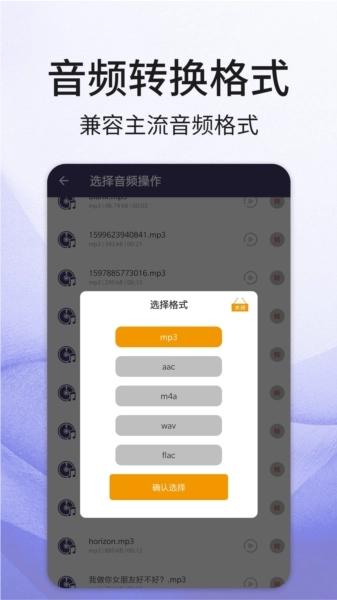 音頻格式轉(zhuǎn)換工具:支持MP3、AAC、WMA、FLAC、M4A等多種音頻格式互轉(zhuǎn),一鍵操作即可完成音樂(lè)格式制作,轉(zhuǎn)換效率十分高效。