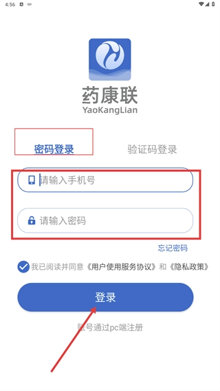 3、選擇【密碼登錄】的方式,輸入賬號(hào)和密碼,勾選相關(guān)協(xié)議后,點(diǎn)擊【登錄】按鈕即可完成驗(yàn)證。