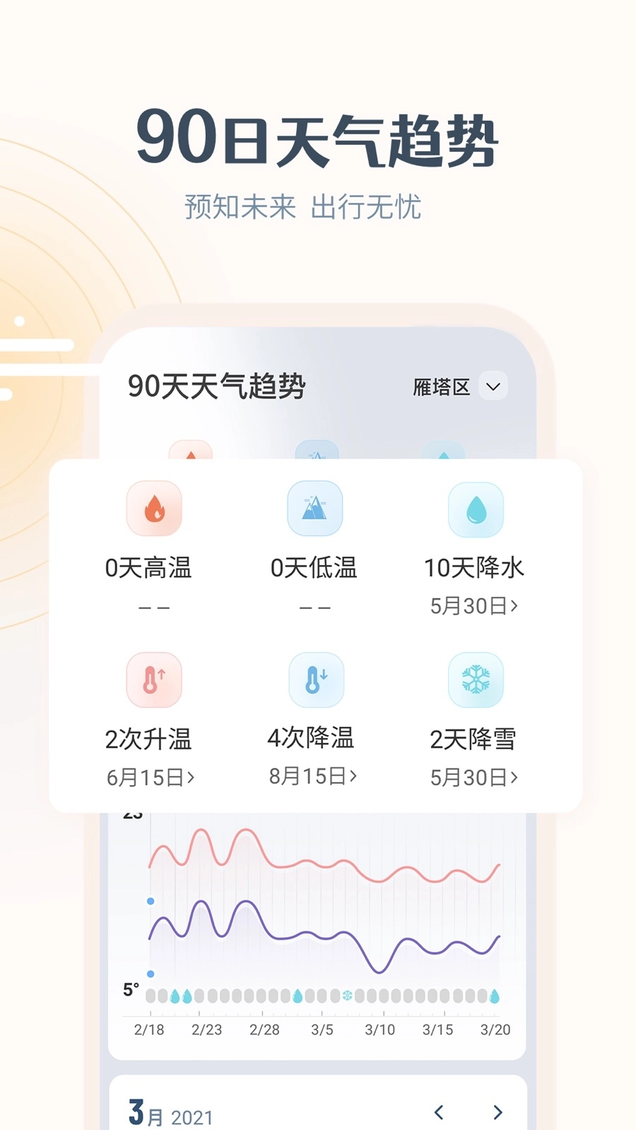 簡(jiǎn)潔直觀的滑動(dòng)操作方式,輕松查看天氣趨勢(shì)、風(fēng)速、生活建議等信息。
