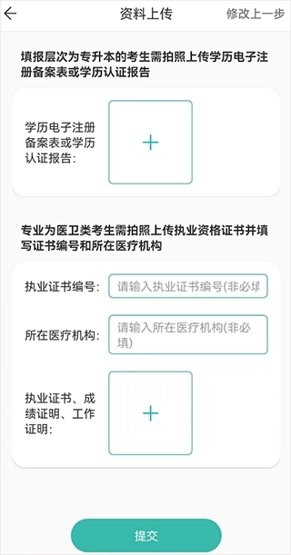 到這一步報(bào)考信息就填寫(xiě)完畢了,點(diǎn)擊提交,進(jìn)入資料上傳