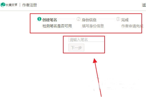 6、在出現(xiàn)的頁面中根據(jù)提示填寫作者筆名即可。