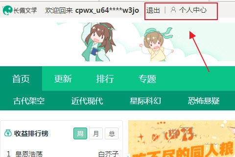 1、登陸長佩文學(xué),進(jìn)入首頁,找到登陸/注冊。