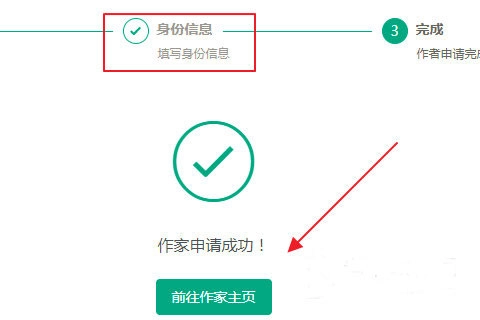 7、接著進(jìn)入作家身份信息填寫界面,輸入個人姓名與住址,填寫完成后頁面會顯示申請成功,此時進(jìn)入作家主頁就可以了。
