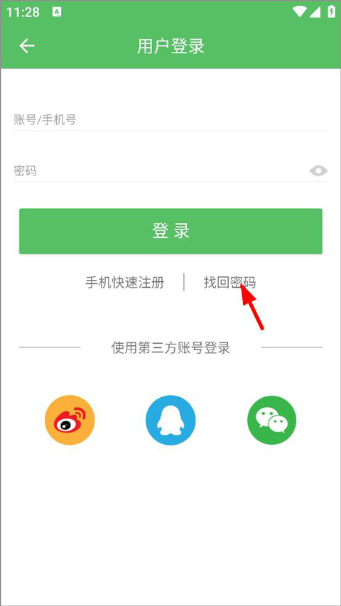 3、用戶在登錄頁面可以選擇第三方賬號進行登錄,也能在登錄欄里點擊“找回密碼”選項。