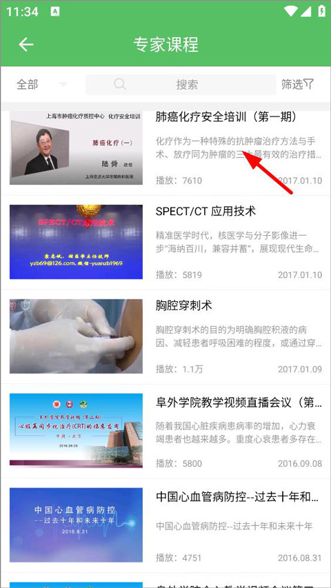 2、進入專家課程頁面后,用戶能夠搜索課程視頻并點擊課程頁面。