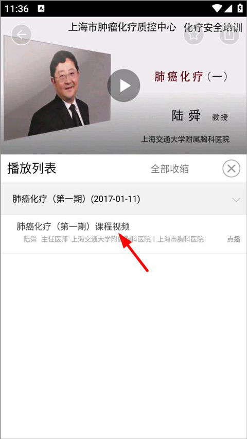 4、打開播放列表后,用戶能夠查看課程視頻的目錄,點擊目錄里的課程視頻就可以進行播放。