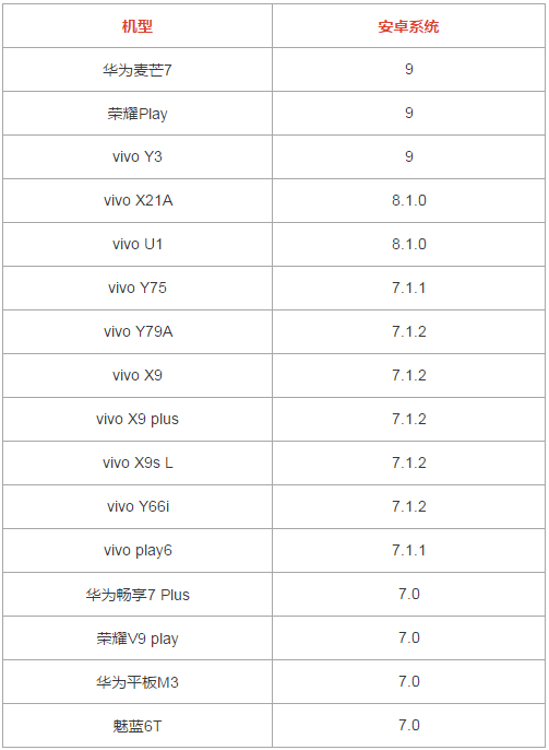 目前該問題在“系統(tǒng)7.0及以上”的部分機(jī)型中較為常見,像以下這些機(jī)型就可能出現(xiàn):