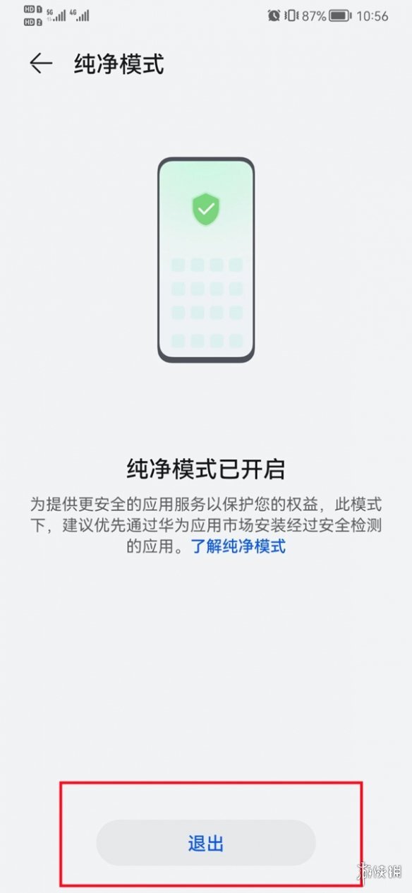 3、在【純凈模式】里點(diǎn)擊“退出”,再選擇“仍要退出”,就能關(guān)閉純凈模式了。