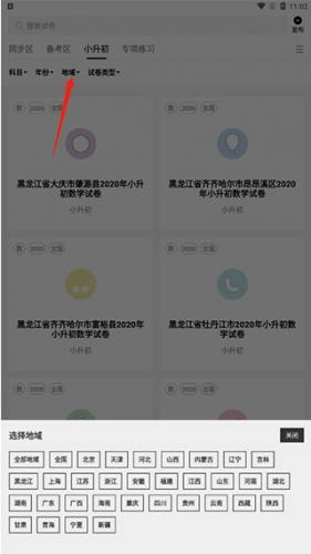 3、根據(jù)自己的需求,選擇你想要題目類型的年份、地區(qū)和試卷類型。