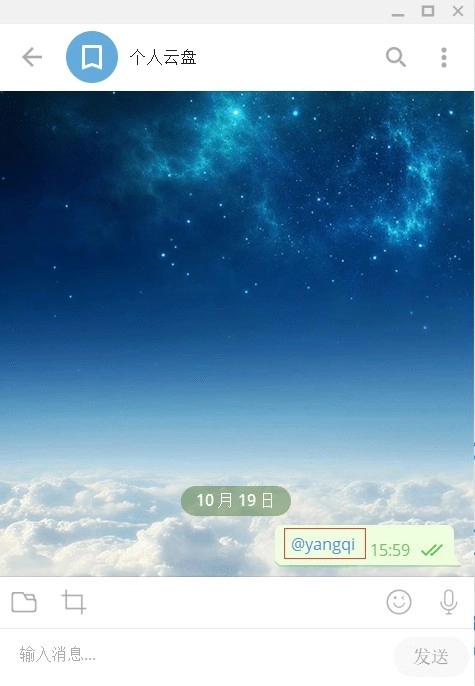 若想通過(guò)用戶名聯(lián)系特定用戶,可先打開(kāi)任意對(duì)話框,輸入“@用戶名”并發(fā)送,隨后點(diǎn)擊消息框里的用戶名,就能直接打開(kāi)該用戶的聊天窗口,在此既可以直接溝通,也能發(fā)起好友申請(qǐng)。我們以云盤對(duì)話框?yàn)槔?,輸入“@+用戶名”,