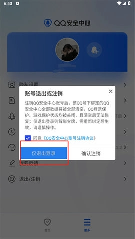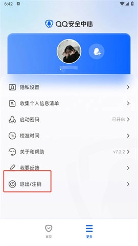 2、進(jìn)入更多頁面后,能看到眾多功能選項。在此處,我們點擊退出/注銷按鈕。